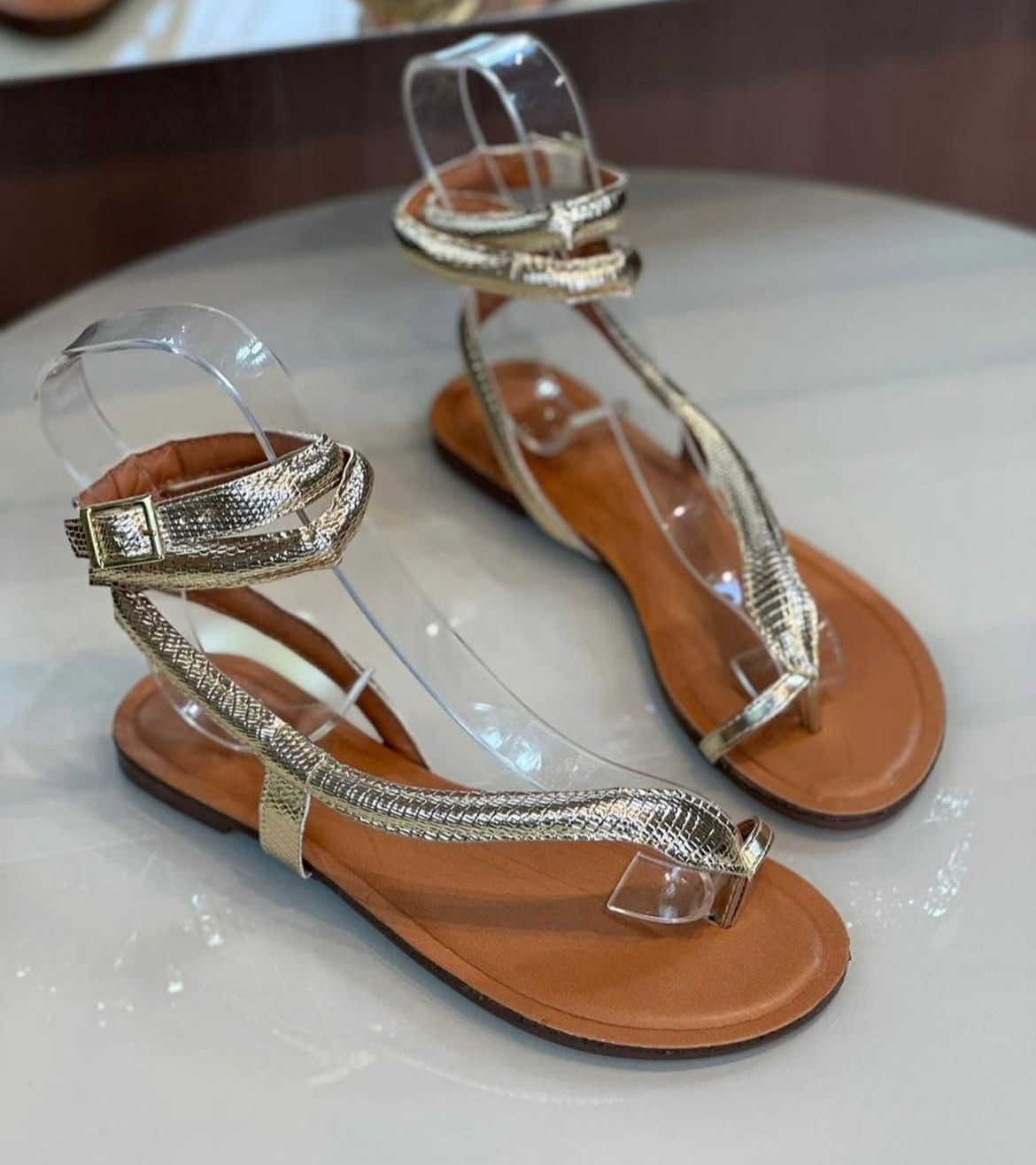 Conheça a Rasteira Cobra, um dos maiores sucessos da nossa loja! Este modelo icônico é perfeito para quem busca um toque clássico e elegante em seus looks. Com um design trançado na perna, essa rasteira é rica em detalhes e garante um visual sofisticado.